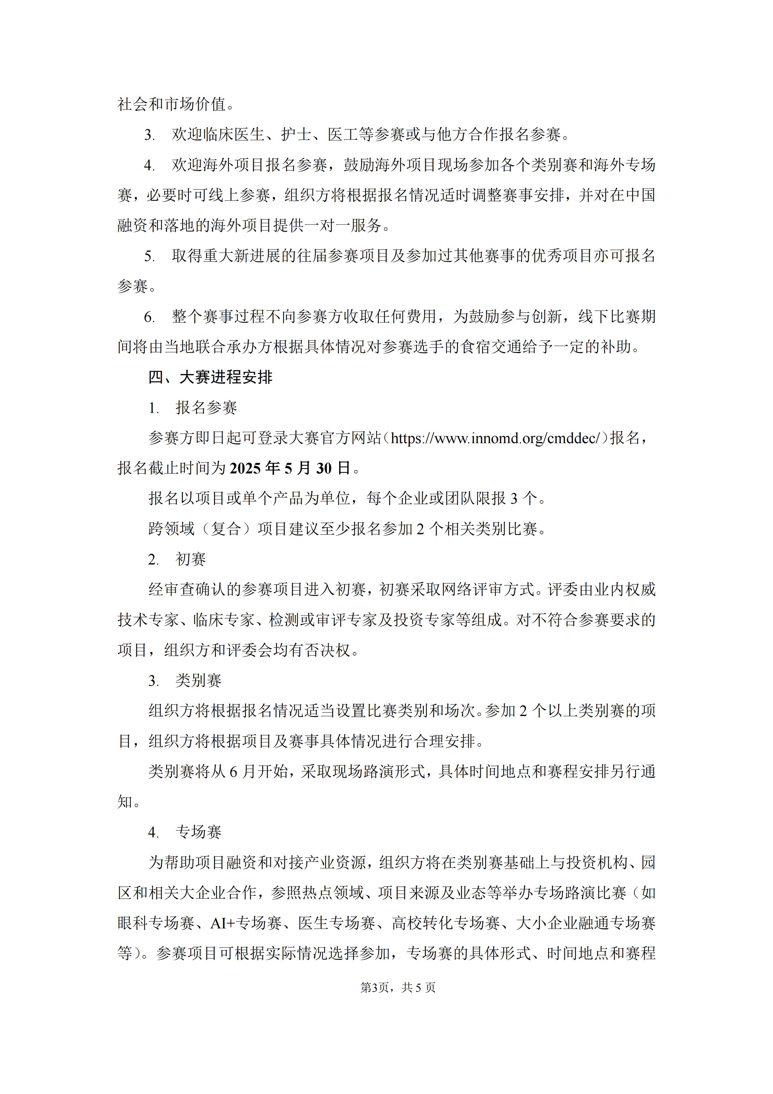 参赛方即日起可登录大赛官方网站(医疗器械创新网网://hengrongwuliu.com/cmddec/)报名,报名截止时间为2025年5月30日。